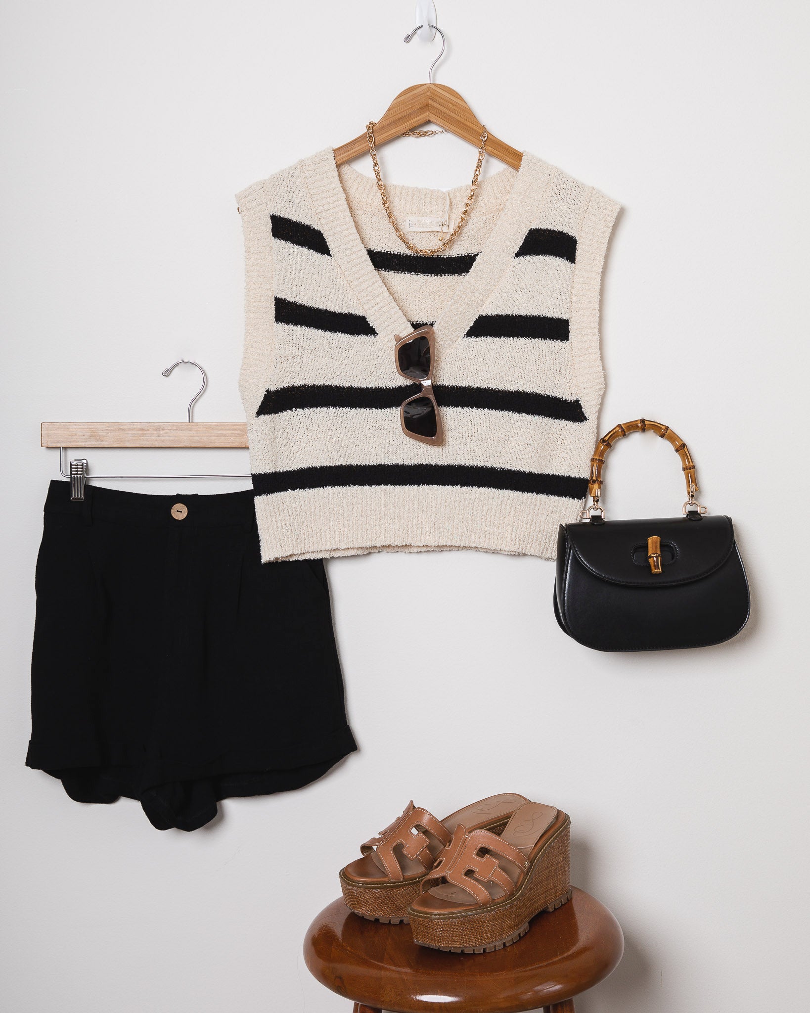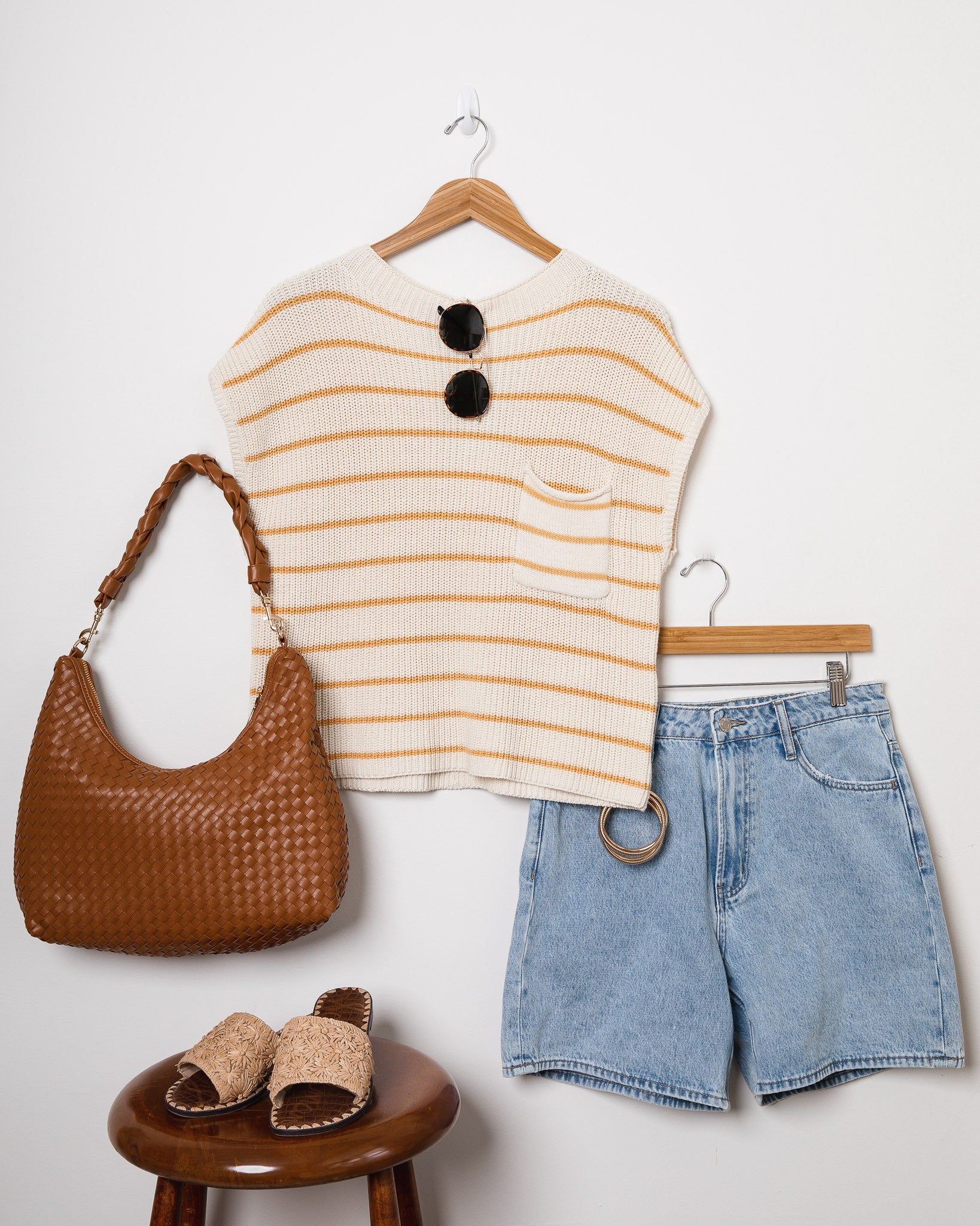 This striped knit tee is the epitome of comfortable yet stylish. The pop of yellow adds a fun splash of color while the cream color keeps it neutral and easy to style. Throw on with your favorite shorts or wear over a swimsuit for an effortlessly casual look.