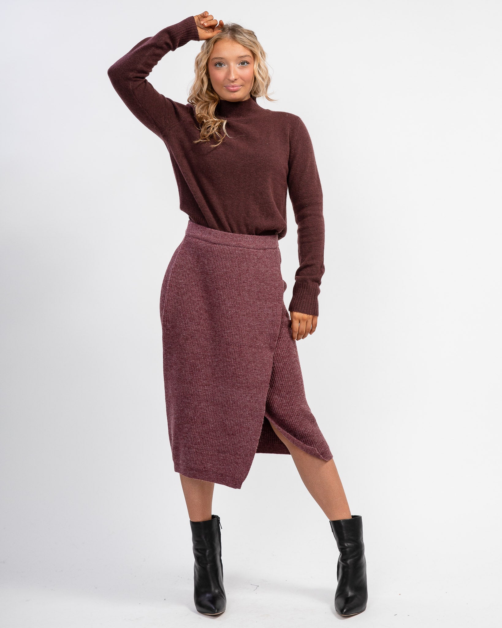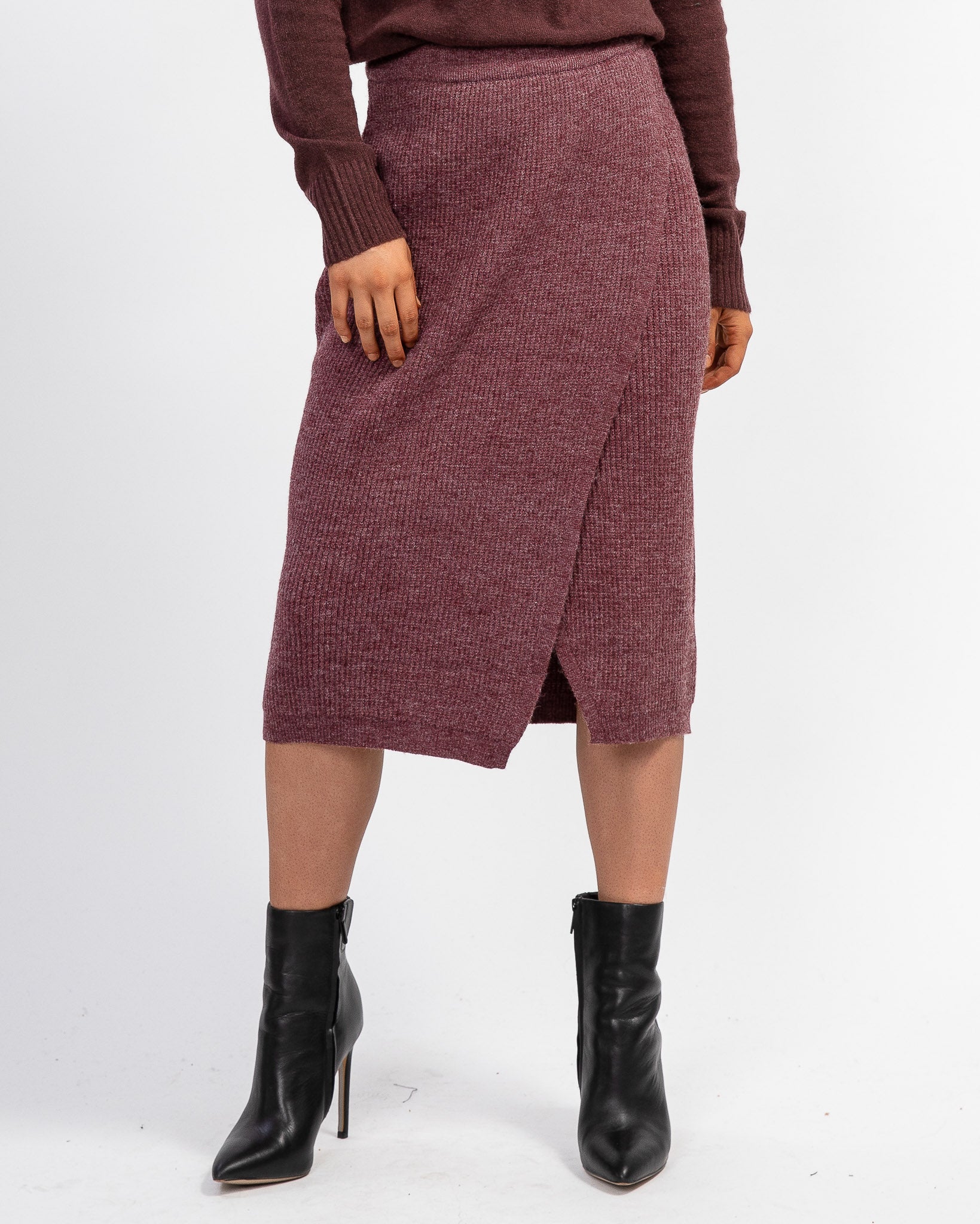 The perfect season-spanning staple, this midi skirt features a rib-knit fabrication and wrap silhouette in an effortless pull-on design.