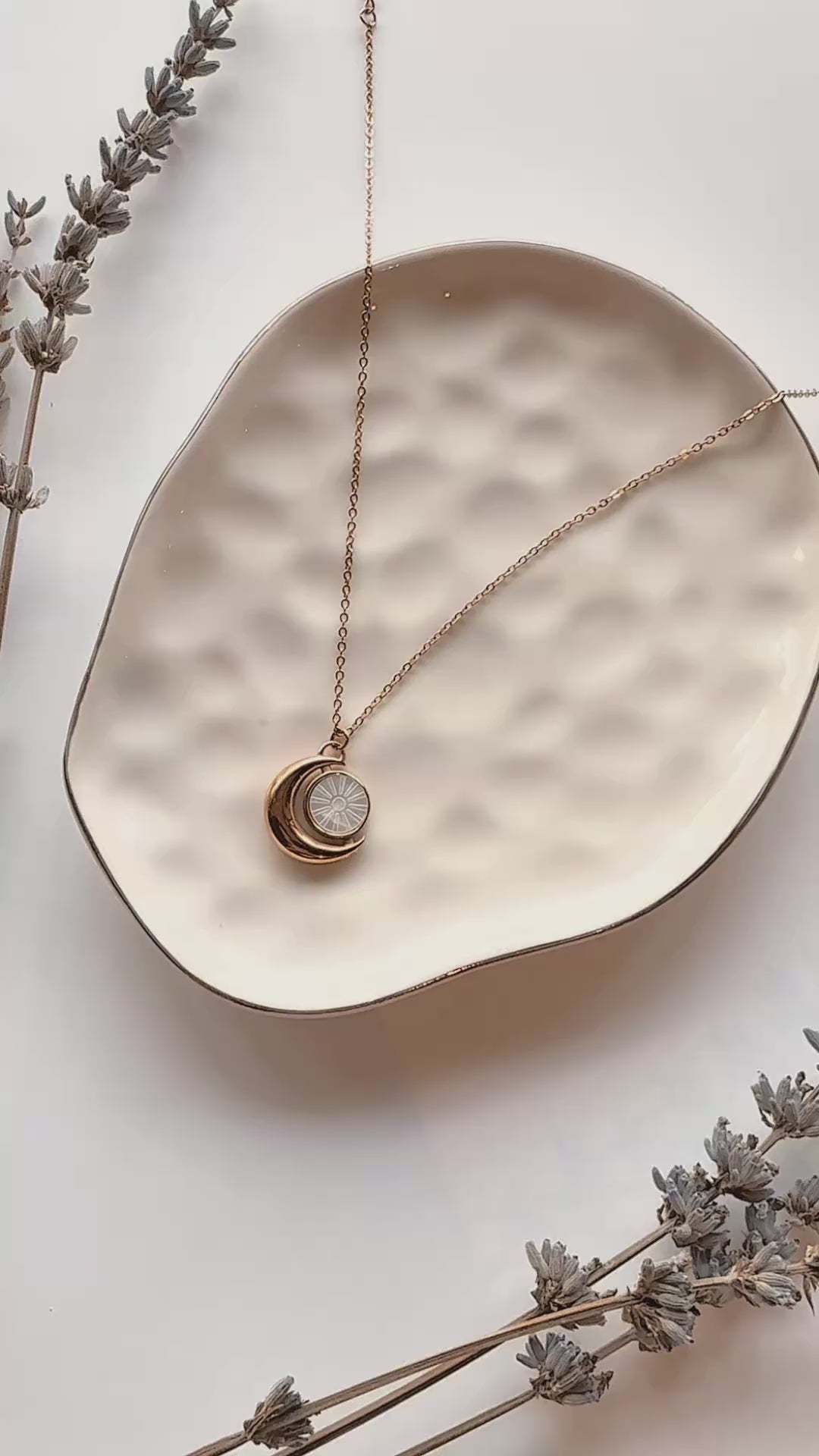 Meet the Boreas Necklace. This delicate gold chain necklace features a single crescent moon pendant with mother of pearl inlay. Perfect for styling solo or layering with your other favorite pieces.